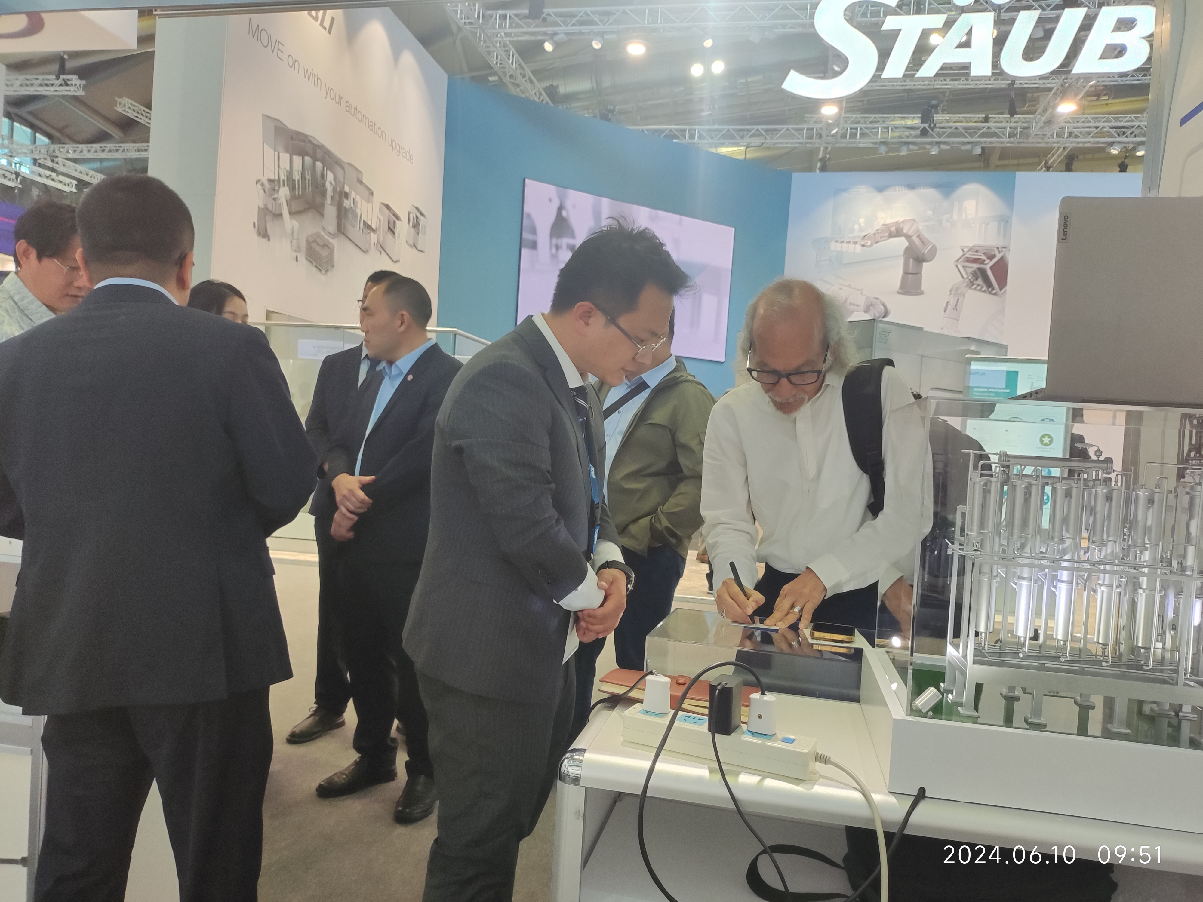 奥能携带纯化水机、蒸馏水机等设备精彩亮相,除展示产品,奥能的技术团队也积极与来访的专业人士进行交流和沟通,分享行业经验,他们就设备特点、应用范围及售后服务等方面进行详细介绍,为观众答疑解惑,赢得参会者广泛赞誉。此外,奥能准备了带有中国特色的小礼物,吸引众多参会者。