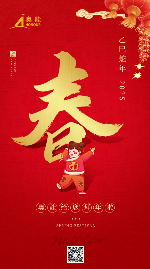 瑞气盈门,新春将至。奥能公司全体员工向一直以来关心和支持我们的客户、合作伙伴及各界朋友致以最诚挚的节日问候和最美好的新年祝福!愿大家在新的一年里万事如意,幸福安康!